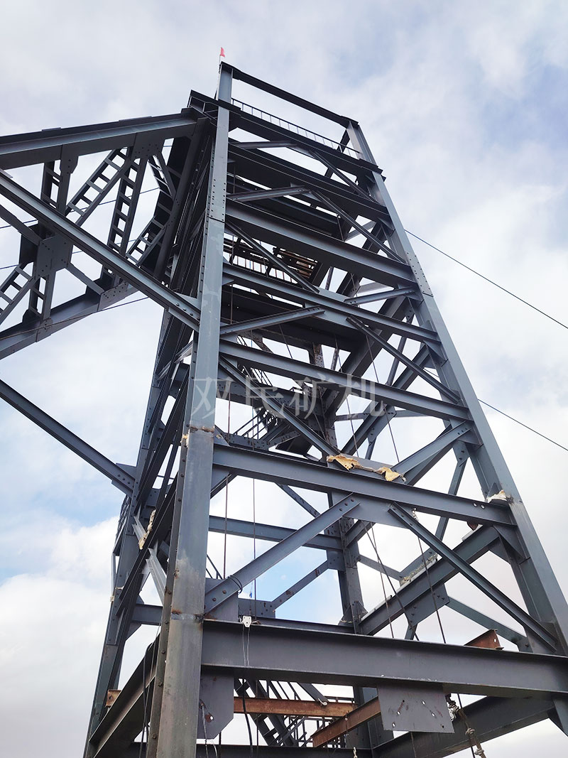 斜撐式永久井架主要特征和優(yōu)點(diǎn): 單斜撐式井架是隨著落地式多繩地上計(jì)技術(shù)發(fā)展而產(chǎn)生的,具有造型獨(dú)特,結(jié)構(gòu)簡(jiǎn)單,受力合理,工程量少,經(jīng)濟(jì)實(shí)用,技術(shù)進(jìn)步的特點(diǎn)。