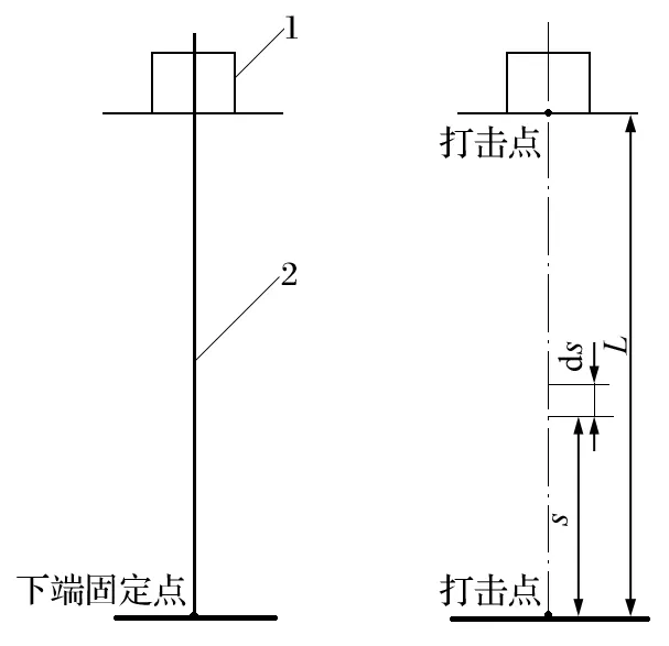 在井口附近位置,對罐道繩某一點施加一垂直沖擊力,使罐道繩產(chǎn)生橫向振動。振動波在鋼絲繩上的傳遞速度與鋼絲繩所受張力的關(guān)系如下: