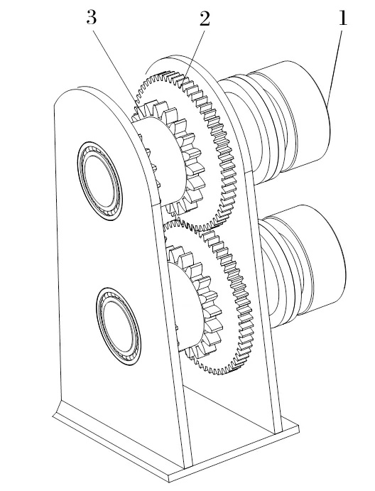 針對雙液壓馬達在工作過程中出現速度不同步問題,在連接鏈輪的軸上加裝一對同步齒輪,使兩個鏈輪速度強制同步。送繩機構的局部結構如圖2所示。