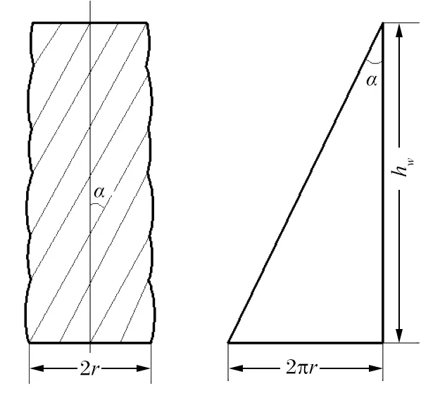 在實際運行過程中,提升鋼絲繩張力zui大的位置往往在彎曲部位。鋼絲繩展開結構如圖3 所示。模擬真實工況下采用防過卷裝置后鋼絲繩的纏繞工況,繩股纏繞在天輪上,鋼絲繩處于純彎曲的狀態(tài)。
